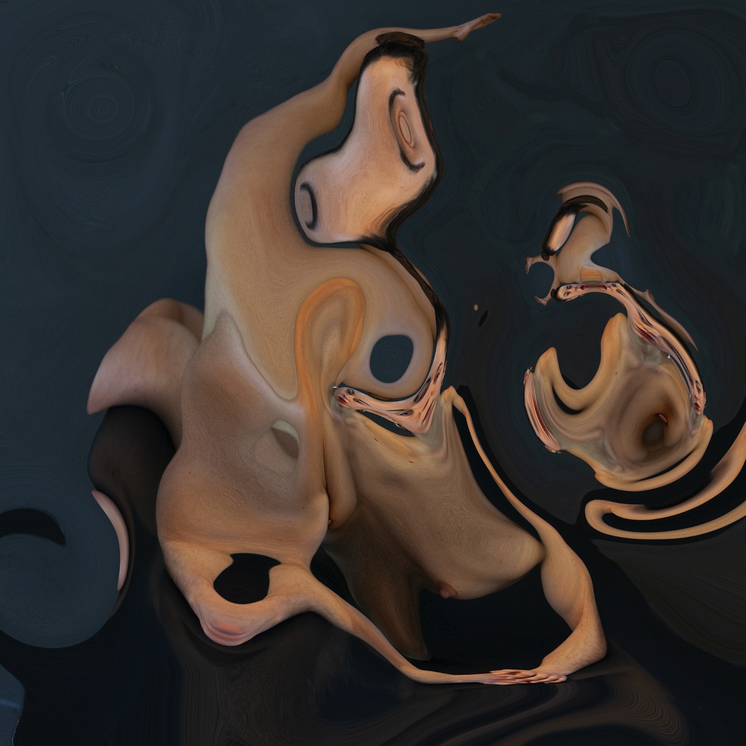 Le deuxieme lot montre des présences hybrides, parfois proches du squelette, du masque, de la sculpture. Les corps semblent en perpétuelle métamorphose. On y perçoit des danses déformées, des créatures en formation ou en dissolution. Ce sont des identités mouvantes, parfois monstrueuses, mais toujours profondément humaines. La matière y devient plus brute, plus tranchée, parfois troublante.